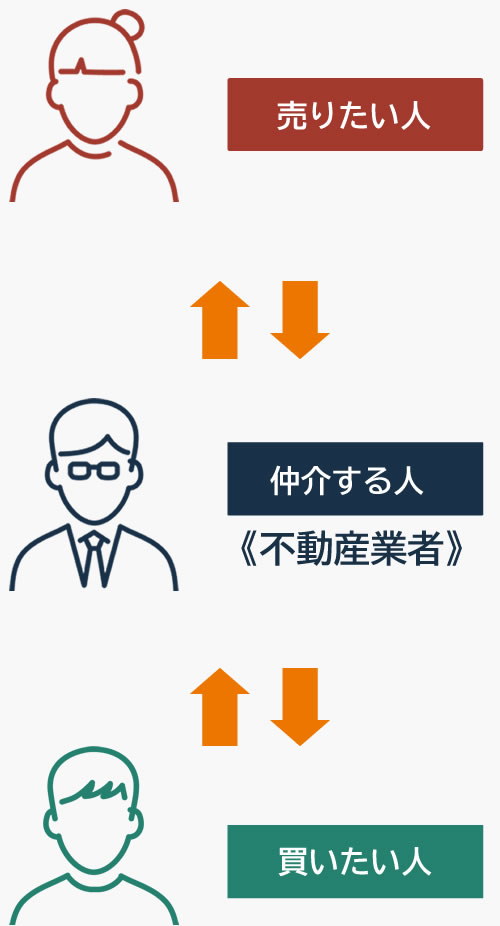 【仲介】は、不動産業者に依頼して「買いたい人」を見つけてもらうことを言います。