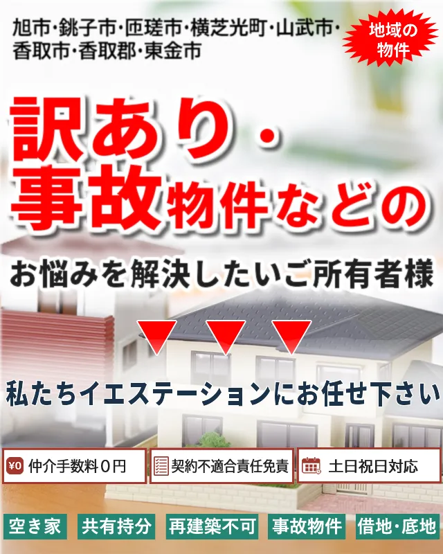 一般的な不動産仲介業者などには売りにくい物件でも、イエステーションならお買取が可能です。全国のイエステーションの実績から独自の販売ノウハウなどを持っております。また弊社が買取をするため、仲介手数料や査定費用などの余分な中間マージンがかからず、高値の提示が可能です。